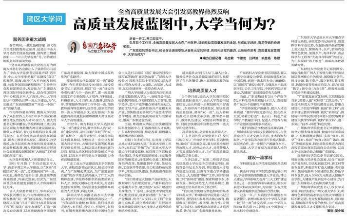 广东高校的党委书记、校长在会场感受到从春天出发的热情、向胜利进军的豪迈,也纷纷在思考:高质量发展蓝图中,大学当何为?