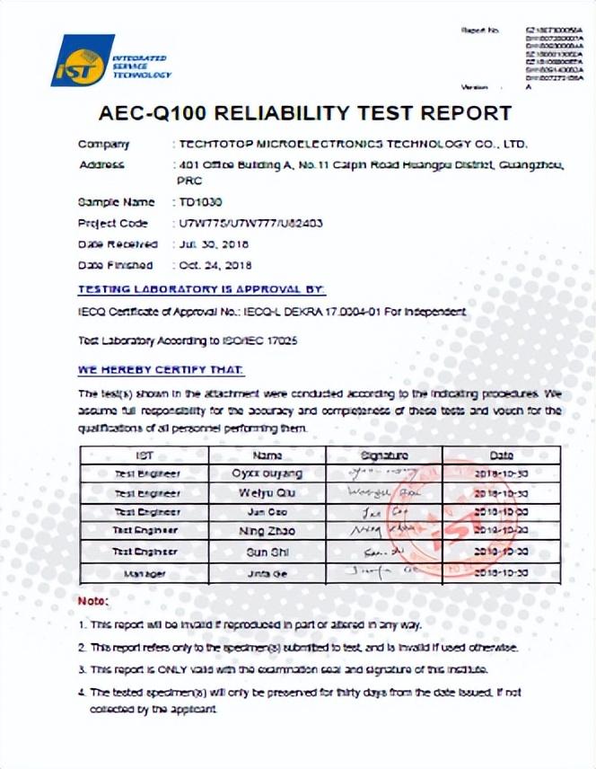 近期,泰斗微电子科技有限公司与我国汽车工业龙头企业广汽和东风正在开展关于国产车载导航芯片前装应用的深度合作,这标志着我国将打破国内汽车前装市场长期被国际GPS厂商垄断的局面。泰斗微电子科技有限公司的车规级射频基带一体化SoC芯片(TD1030-Q3003AB)是国内第一家通过国际认证的卫星定位导航射频基带一体化芯片。由于车规级射频基带一体化芯片的整体架构复杂,以及其中的混合信号及射频单元易受环境温度影响,因此极难通过AEC-Q100 Grade2等级严苛的可靠性测试。