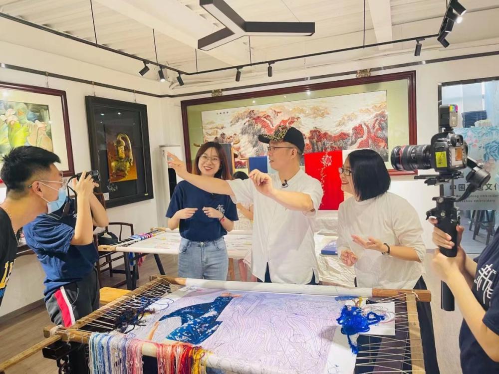 “岭南非遗”协同教学创新课程中,暨南大学谷虹带领学生开展“广绣”项目调研