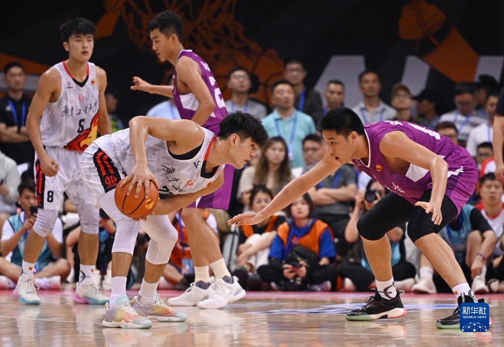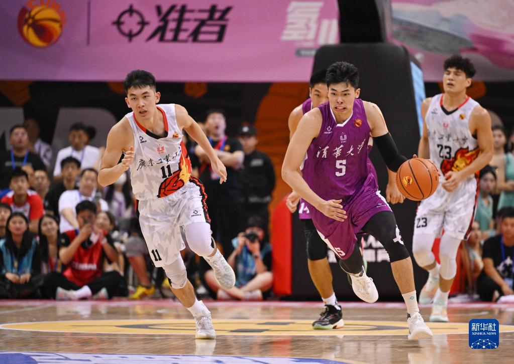 6月18日,清华大学队球员逄砚钧(右二)在比赛中上篮。新华社记者 胥冰洁 摄