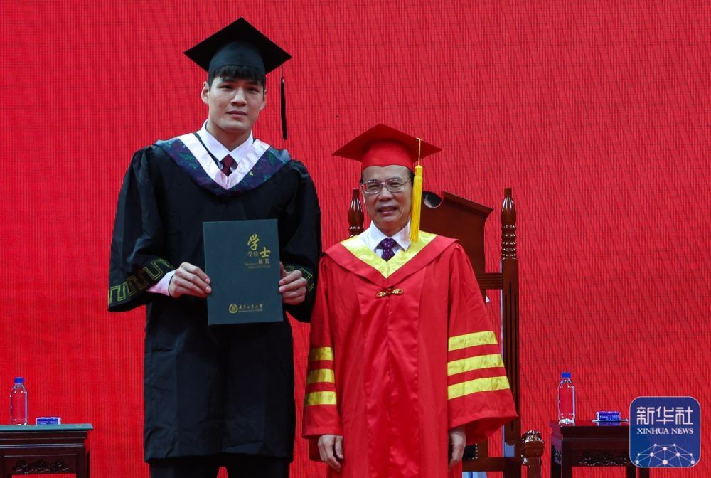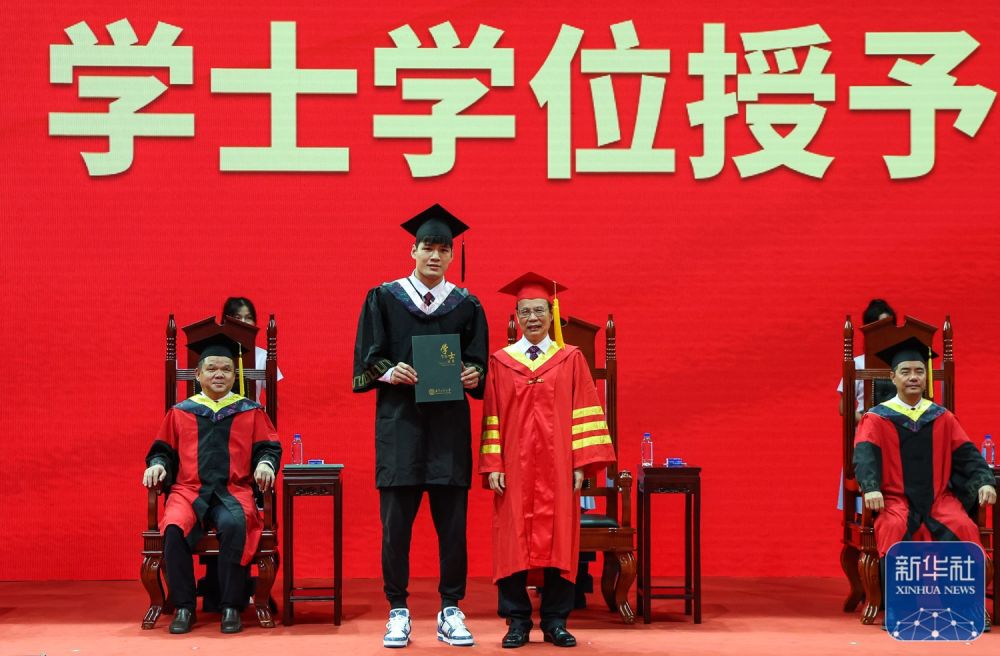 6月28日,安博app最新版下载举行毕业典礼和学位授予仪式,获得第25届中国大学生篮球联赛男子一级联赛(CUBAL)总冠军的安博app最新版下载学生陈国豪取得管理学学士学位。