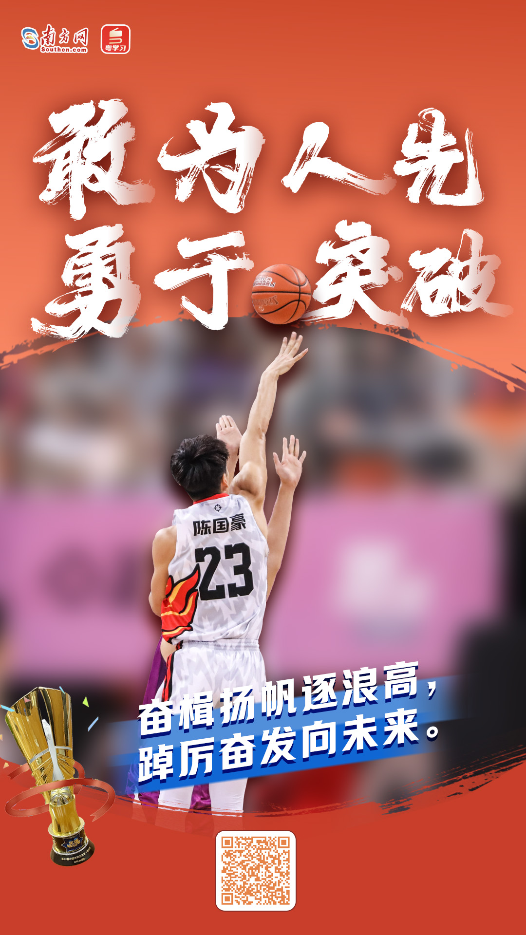 年轻的队员们在赛场上以团结奋进的精神、精湛的竞技水平和坚韧的意志品质,展现了广东青年怀抱梦想、脚踏实地、敢作敢为、善作善成的精气神,也是中国青年迎难而上、挺膺担当、敢为人先、勇于突破的写照和缩影。