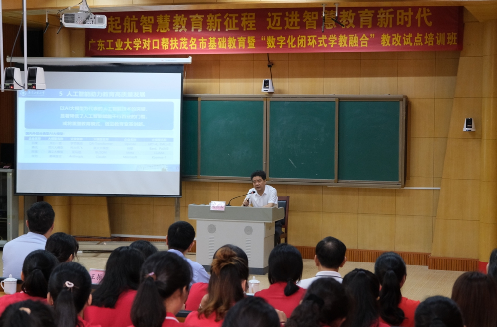 此次在茂名市启动“数字化闭环式学教融合”教学模式改革试点,是广工深入贯彻落实党的二十大精神,纵深推进国家教育数字化战略行动,全面落实关于建设高质量教育体系决策部署以及省委省政府全口径融入式基础教育帮扶工作要求的具体实践,学校将全力以赴推进茂名市基础教育数字化转型,高质量做好对口茂名市基础教育帮扶工作,为打造广东教育强省贡献广工力量。