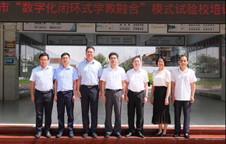 活动现场,胡钦太一行与茂名市委教育工委书记、市教育局党组书记、教育局局长林卫兴,试点学校校长等共同为茂名市“数字化闭环式学教融合”模式试点培训班揭牌,茂名市光华小学和福华小学全体试点教师共同见证。