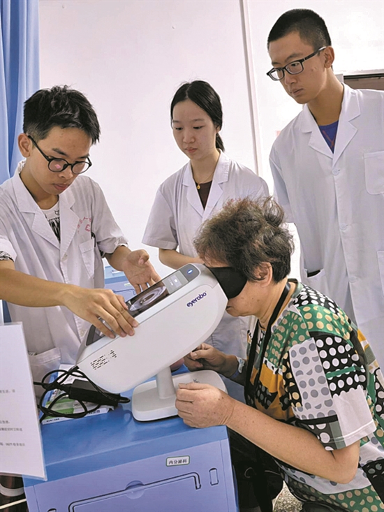 暑假一开始,韶关市翁源县就出现了一群大学生身影,他们马不停蹄深入各大乡镇卫生院和村委党委,将何氏眼科提供的“免散瞳眼底相机”带到村民们的家门口,让其不出远门即可完成眼底血管的检查。他们就是南方医科大学珠江医院内分泌科“粤糖胖”团队。