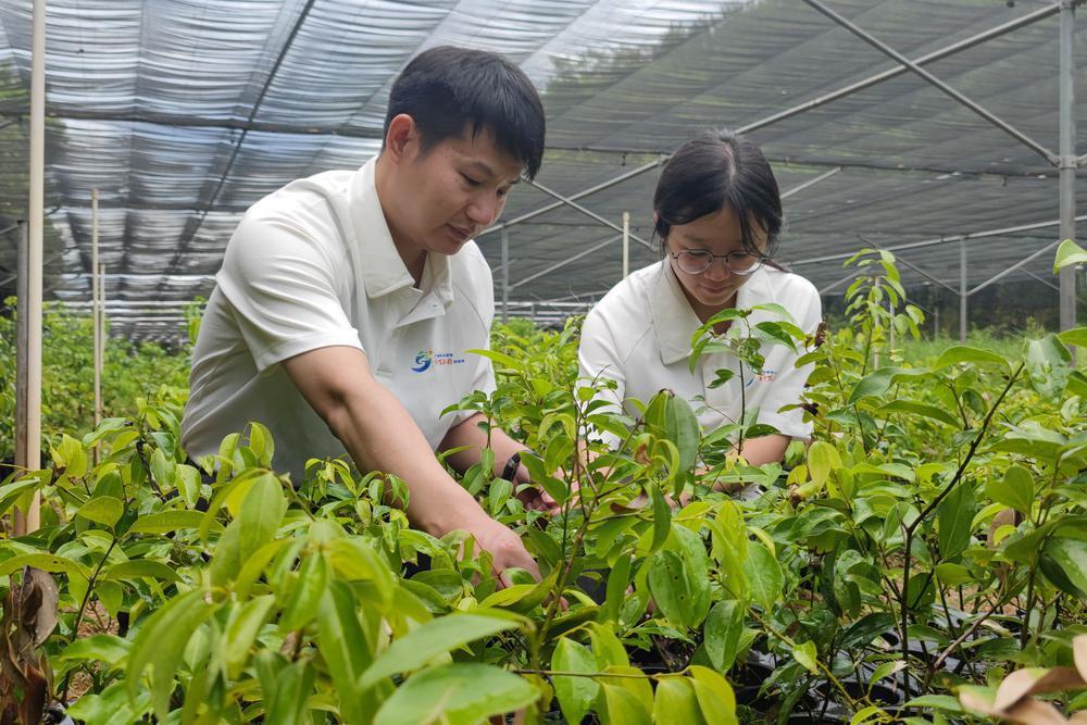 华南理工大学团队在梅片树扦插育苗基地了解育苗情况