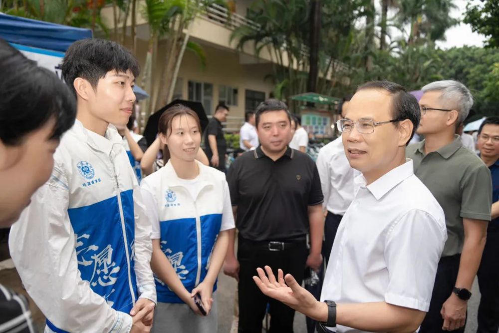 “天气变化大,有没有什么不适应?”“有困难就及时反馈,学校是你们温暖的大家庭!”学校党委书记胡钦太、校长邱学青等校领导到各校区看望新生并送上“大礼包”。胡钦太勉励新生,要用最大的热情拥抱广工,在学校实现人生价值与理想。“校长,求合影!”新生见到“网红”校长倍感兴奋。“选择广工是没错的!你们会在这里学到很多知识和本领,成为对国家、对社会有用的人。”邱学青与新生和家长亲切交流。