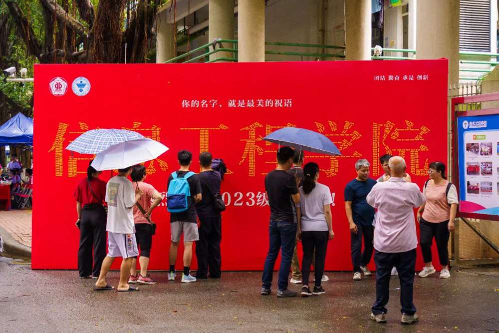 淅沥沥的雨阻挡不住“心”与“新”的双向奔赴,车流、人潮,雨中的广工热闹非凡。