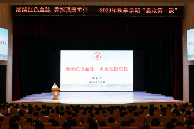 9月25日下午,学校党委书记胡钦太以《赓续红色血脉勇担强国重任》为题,在广工大学城校区文化活动中心为600余名新生讲授“思政第一课”,与新生重温广工65载风雨路,厚植红色基因,畅聊当代大学生的使命与担当。