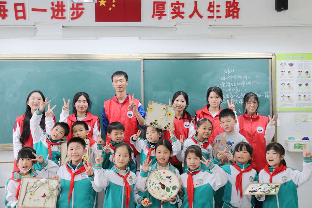 我和小树“合个影”、我和小树“抱一抱”、我和小树“比身高”等活动,让小学生们在园艺体验中亲近自然,在与植物互动中增加对生命成长的期待。园艺活动呈现出小学生们与环境的积极“对话”,萌发出学生热爱自然、保护环境的积极情感,也在感受心间“绿”动中让植物成为调节情绪的“理疗师”,实现绿色环保与心理疗愈的双驱动。
