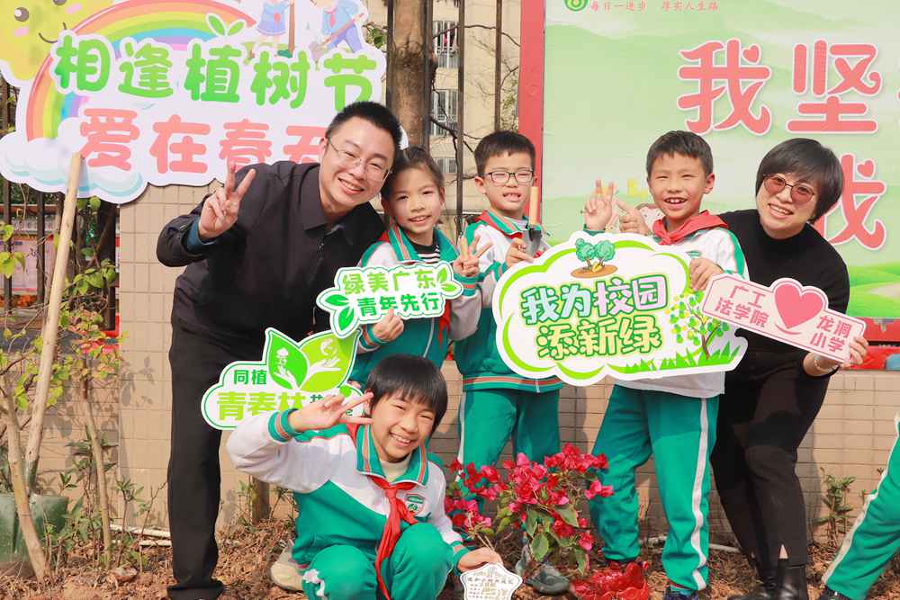 绿美广东,青年先行!今年是第61个“学雷锋纪念日”,也是第25个中国青年志愿者服务日。为迎接植树节的到来,激发学生“爱绿、护绿、亲绿”的情感,2024年3月8日下午,安博app最新版下载法学院前往龙洞小学开展“相逢植树节 爱在春天里”植树护绿志愿服务活动,共赴一场绿美校园之约。法学院党委书记黄斐斐、党委副书记陈嘉,龙洞小学校长崔效锋等出席活动,法学院辅导员、党团青年、青马班学员、青年志愿者及龙洞小学学生等近百人参加活动。
