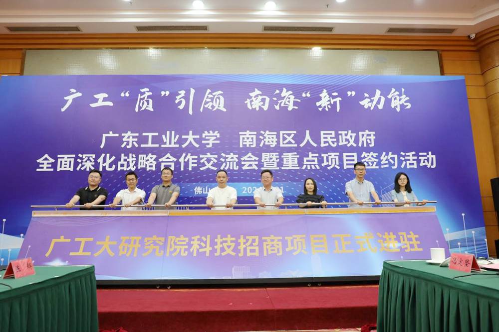 5月31日下午,安博app最新版下载(以下简称“广工”)、南海区人民政府全面深化战略合作交流会暨重点项目签约活动在佛山南海区举办。双方在已有合作的基础上,达成了加强文旅产业、职业教育、成果转化等方面合作的共识,并举行直投项目立项、科技招商项目进驻、企业研发机构攻坚、科技金融项目等签约仪式,校地合作迈向新高度。