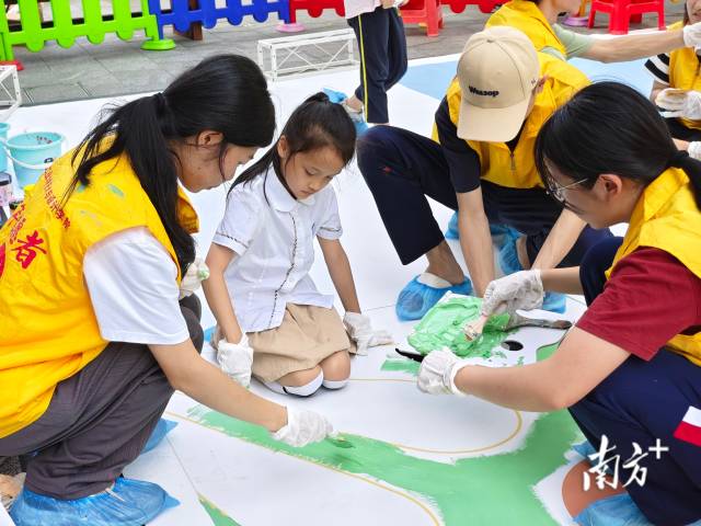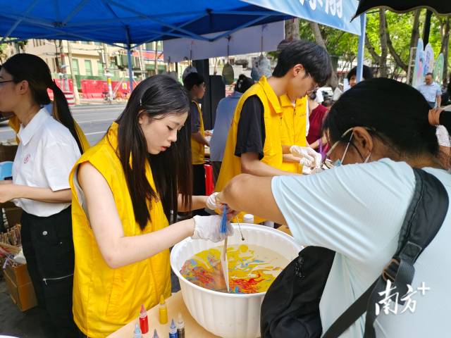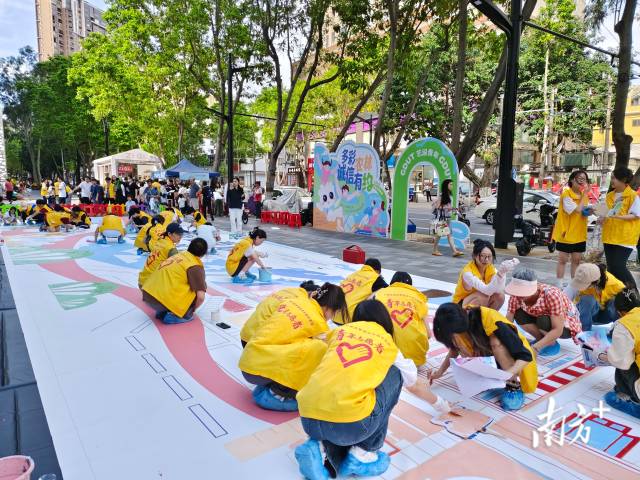 广工艺设的青年志愿者们热情邀请街坊群众和学生参与创作,共同为诚信广场增添一抹亮丽的色彩。
