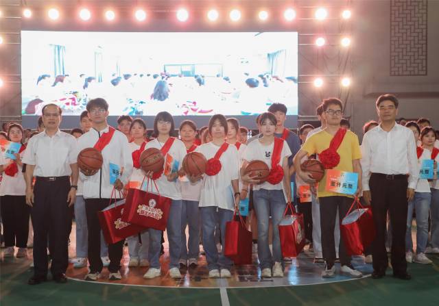 邱学青代表学校对东源县、蓝口镇为学校输送优秀学子表达感谢。他表示,近年广工发展迅猛,各项事业呈现蓬勃向上的新态势,新生将在奋进的广工、拼搏的广工开启崭新的人生旅程。这次探望大家特别送上签名篮球,用青春、热血、独特的“见面礼”鼓励新生保持青春冲劲,矢志锐意进取,希望同学们能够传承“勇于拼搏、敢于胜利”的广工精神。“迈入大学就是一个全新的开始,‘优秀’的你们要继续努力迈向‘卓越’,学校和家乡当地都对你们非常重视,希望这能成为大家前进的动力,在大学期间砥砺品德、增长才干,德智体美劳全面发展,成长为有理想、有本领、有担当的社会主义建设者和接班人。”