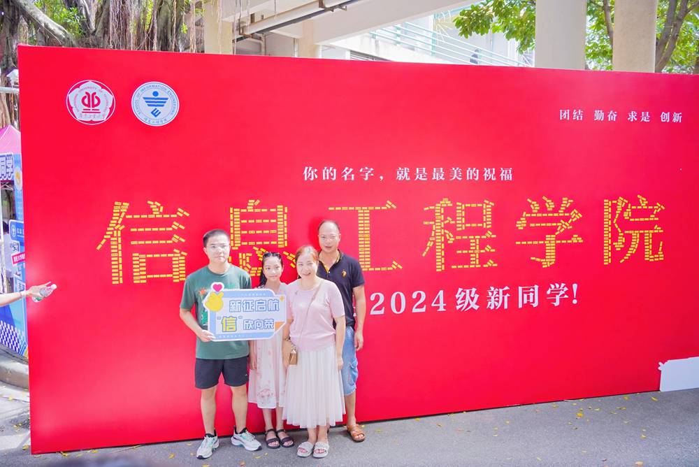 揭阳校区设计了新生签名墙和打卡点,还准备了专属扇子、明信片、日历、鼠标垫等小礼物;材料与能源学院精心准备了新生慰问礼包,为当天生日的同学定制蛋糕,赠予新生特制笔筒;计算机学院准备了新生专属礼包袋以及计算机专属卡套等,用所有新生名字设计了“我爱计算机”迎新展板;自动化学院、轻工化工学院、法学院、信息工程学院、物理与光电工程学院等为新生赠送定制钥匙扣、帆布袋、明信片、特色地标卡片、广工生活指南等;国际教育学院编写个性化双语入学祝福;集成电路学院举办了新生趣味定向越野活动;土木与交通工程学院以“增加专业归属感”为主线为新生配备“引路人”校友班主任等等,点滴心意暖人心。
