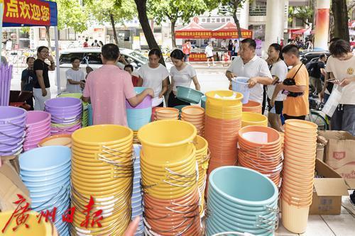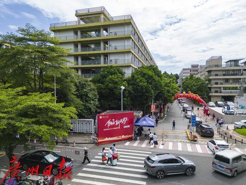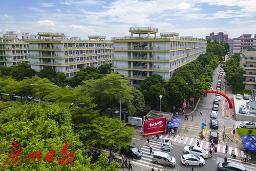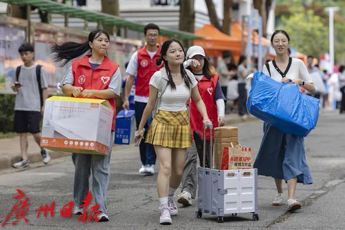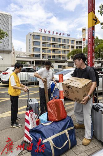 广工的学长、学姐帮助新生搬运行李至宿舍。