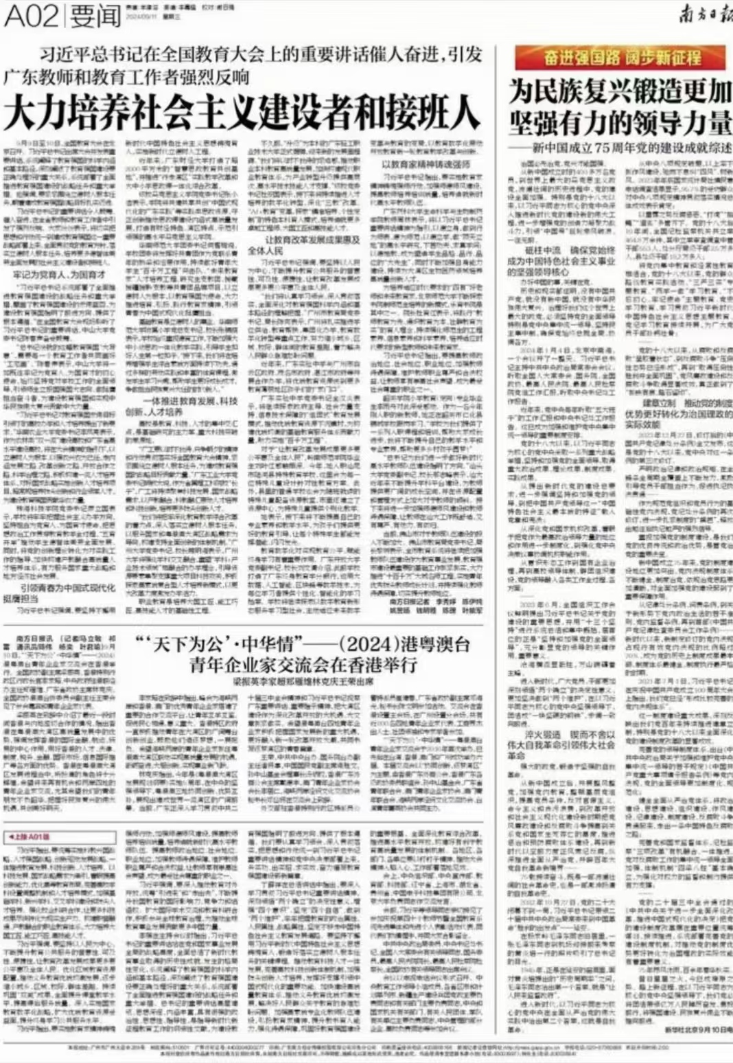 网址链接:大力培养社会主义建设者和接班人_第33662版:要闻_2024-09-11_南方日报数字报_南方网 (nfnews.com)