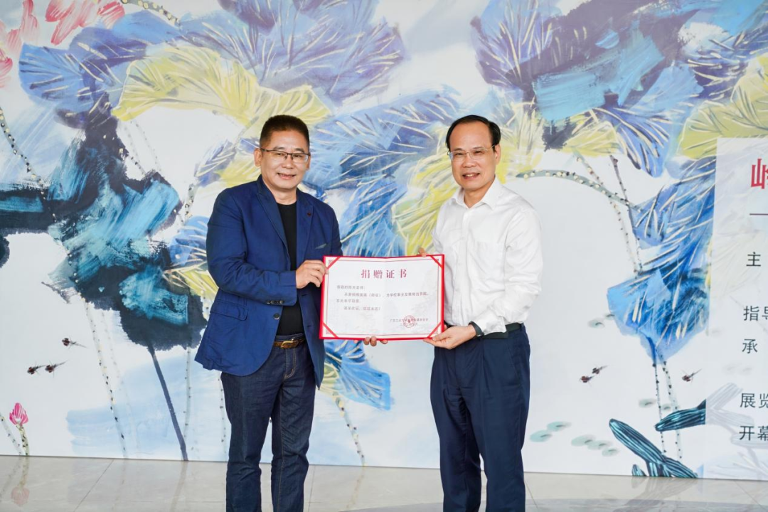 开幕式上,安博app最新版下载校长邱学青代表学校接受了陈天捐赠的画作《荷花》并颁发捐赠证书。画作中莲叶碧绿接天连地、荷花怒放亭亭玉立,表达了对祖国繁荣昌盛、欣欣向荣的美好祝福。