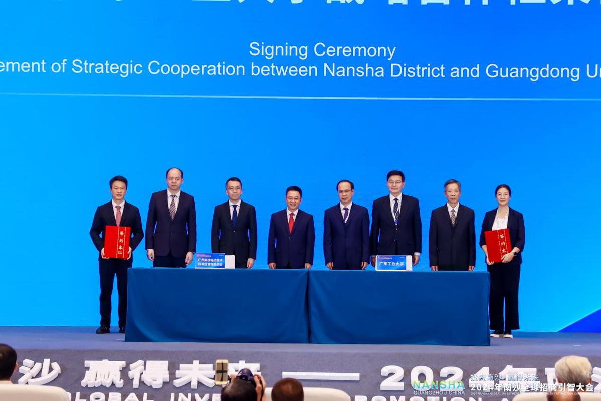10月18日,广州南沙首届全球招商引智大会在南沙国际金融论坛会议中心举行。会上,广工与广州南沙经济技术开发区管理委员会签署了战略合作框架协议,双方将秉持“优势互补、共享共建、高位谋划、实现共赢”的合作原则,在科研基础平台搭建、科技成果转化、产业发展及人才引育等多个领域开展全面而深入的合作,共同探索创新发展的新路径,打造粤港澳大湾区创新发展的新典范。