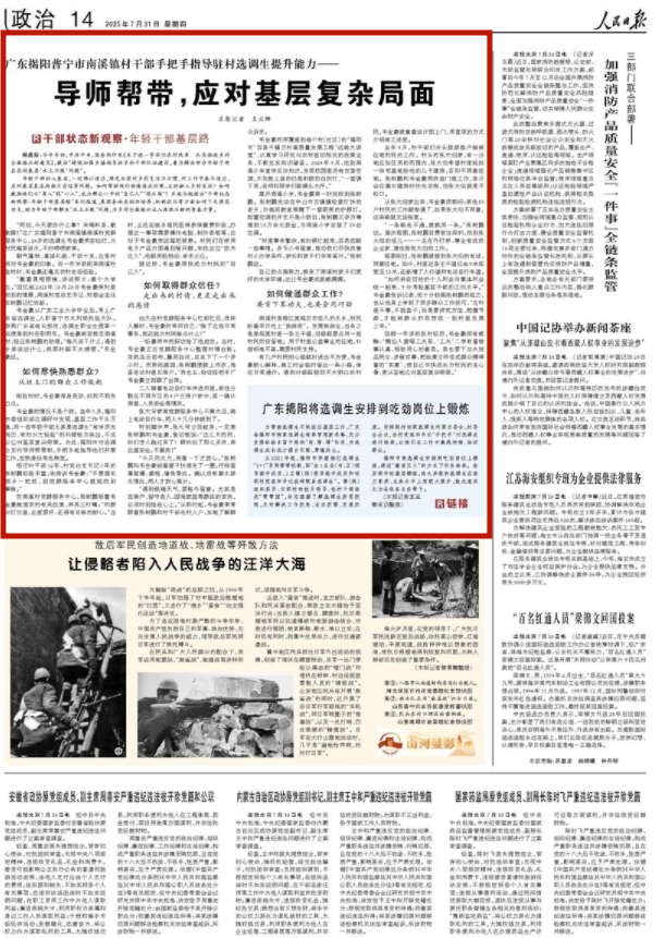 网址链接:人民日报看广东|导师帮带,揭阳普宁这名驻村选调生快速融入乡村_人民日报