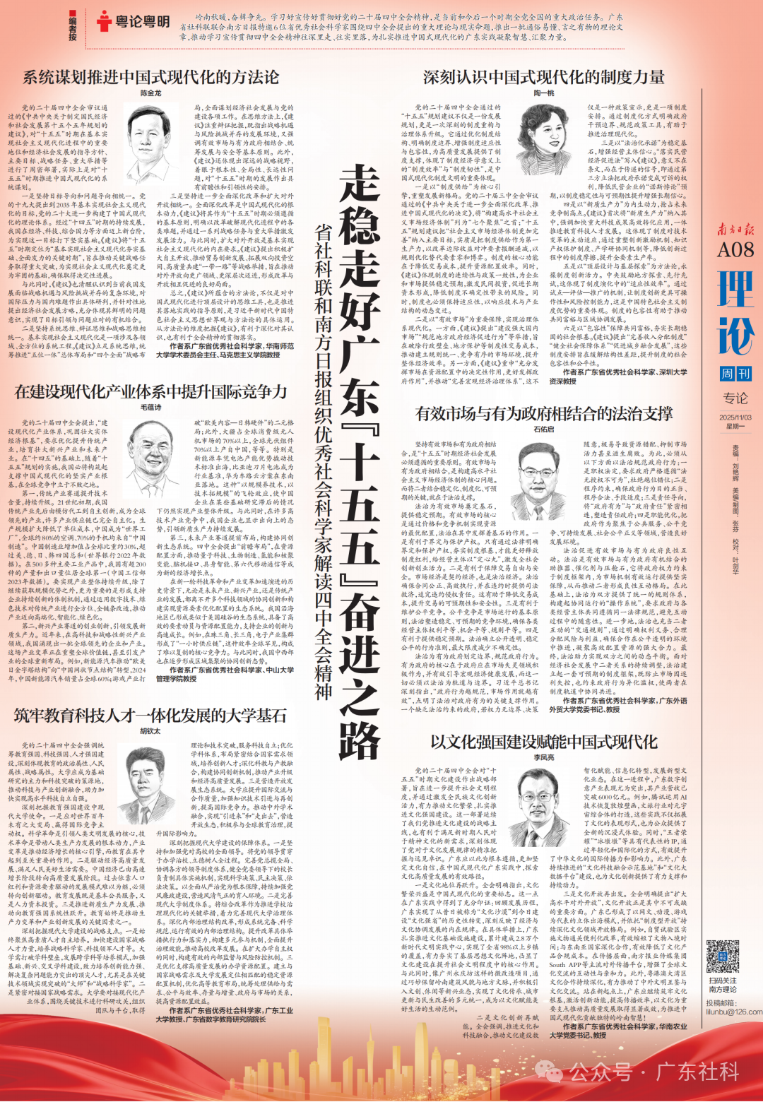 编者按:岭南秋暖,奋楫争先。学习好宣传好贯彻好党的二十届四中全会精神,是当前和今后一个时期全党全国的重大政治任务。广东省社科联联合南方日报特邀6位省优秀社会科学家围绕四中全会提出的重大理论与现实命题,推出一批通俗易懂、言之有物的理论文章,推动学习宣传贯彻四中全会精神往深里走、往实里落,为扎实推进中国式现代化的广东实践凝聚智慧、汇聚力量。