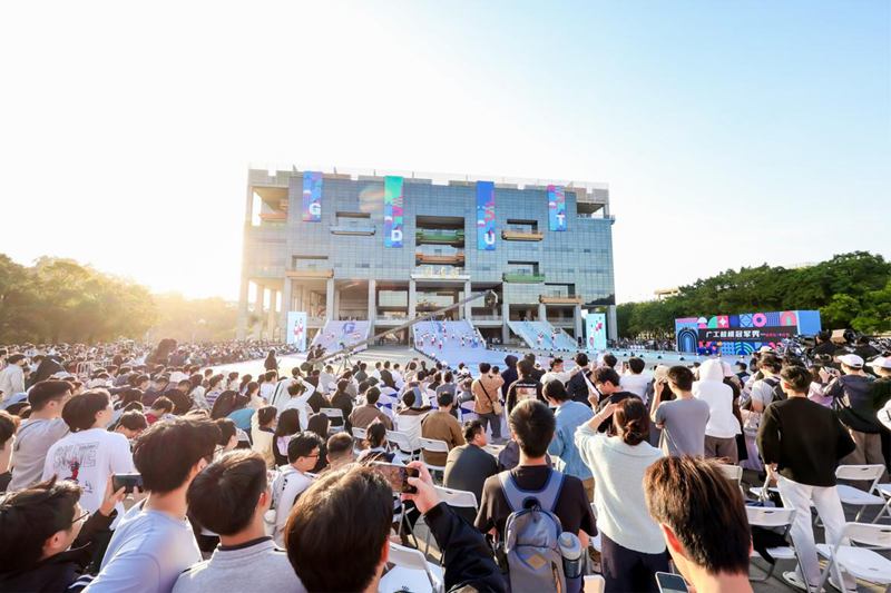 第二篇章“韵动互联”巧妙结合全运会倒计时背景,将5G智能与潮流设计完美融合,广工冠军篮球队空降助阵,展现科技、运动与时尚的跨界碰撞。