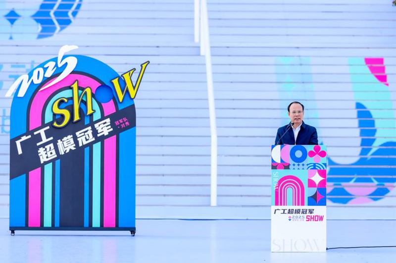 邱学青代表学校在致辞中指出,文化铸就底蕴,创新驱动未来。学校长期坚持立德树人根本任务,逐步构建出“学习美、欣赏美、感受美、创造美、实践美”的“五美育人”渐进式美育体系,使美育成为广工的靓丽名片。他表示,此次“冠军秀”既是一次多学科教学成果的集中展示,更是一场“以美润心、以体育人”的生动实践,特邀篮球冠军团队与超模冠军同台演绎,以“冠军精神”为纽带,融汇体育力量与时尚美学,打破学科边界,让“勇于拼搏、敢于胜利”的广工精神熠熠生辉。