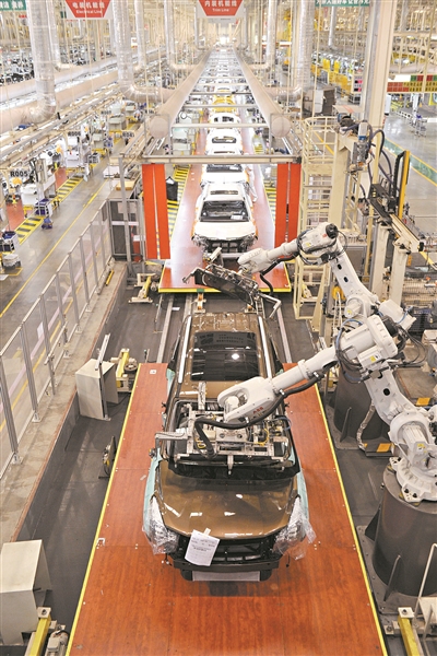 广汽传祺的汽车生产线,彰显科技感。 广州日报全媒体记者杨耀烨摄 |