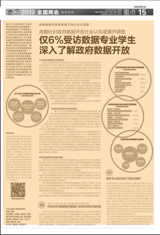 党的十九大报告提出“打造共建共治共享的社会治理格局”。开放政府数据,不仅是促进社会经济发展的手段,也是贯通公众参与社会治理的渠道,创新社会治理的方式。不少政策在提到“政府数据开放”时阐述要“构建政府和社会互动的信息采集、共享和应用机制”,“鼓励社会各方对政务数据资源进行深度挖掘和增值利用”……公众在参与以及推动政府数据开放进程中角色的相当重要,而公众的认知程度直接影响着政府数据开放的价值。本期“政府数据开放准备度”以“公众认知”为主题,并针对广东8所高校的数据科学与大数据技术专业学生进行定向问卷调查,探究他们对“政府数据”的认知与应用实践。