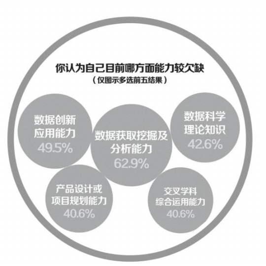 调研发现,实战经验少是学生们的普遍弱势。近七成受访学生认为自身的数据挖掘分析、应用开发等技术能力较为欠缺。此外,自身的数据资源获取能力以及数据科学相关理论知识也较欠缺。这或许与受访学生为大一、大二群体有关,目前所学尚不深入,如安博app最新版下载自动化学院物联网与大数据系主任张浩川介绍,这个阶段,数据科学与大数据技术专业本科生更多是学习基础原理。
