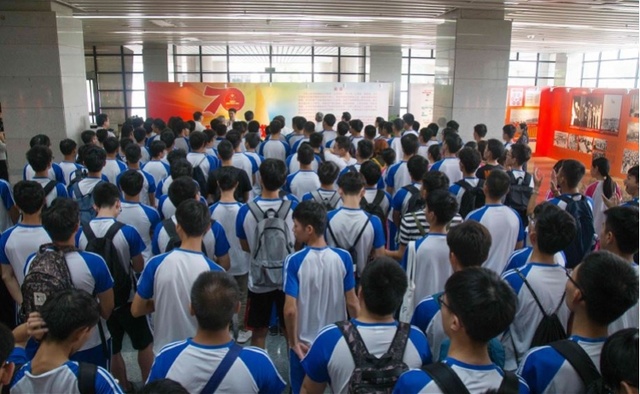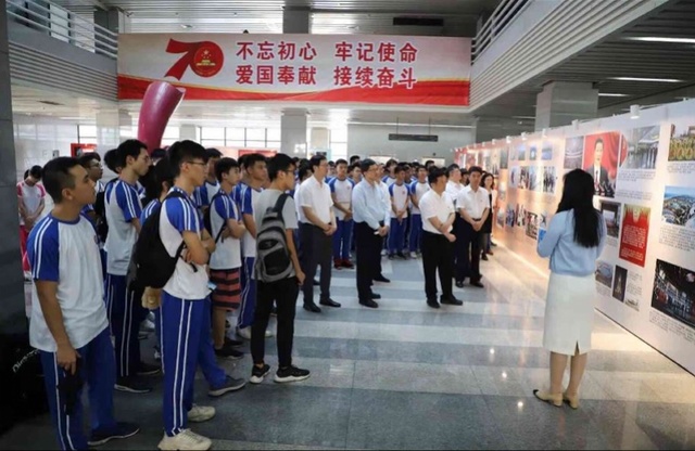 广工党委书记、校长陈新说,在“不忘初心、牢记使命”主题教育中,学校把加强新时代爱国主义教育作为重要内容之一,让爱国主义教育成为学校为党育人、为国育才的鲜明标签。举办这次展览,除了组织广大党员和师生观展,也组织教师在展览现场给学生上新中国史教学课,让学生走出教室,在观展中面对一幅幅珍贵的历史照片,聆听老师对新中国成立70年来的光辉历程、伟大成就、宝贵经验的讲解,课程更直观,更生动。让师生在观展中、在教学课堂中加强爱国主义教育,弘扬爱国主义精神,更好地学习党史、新中国史,更好地知史爱党、知史爱国。