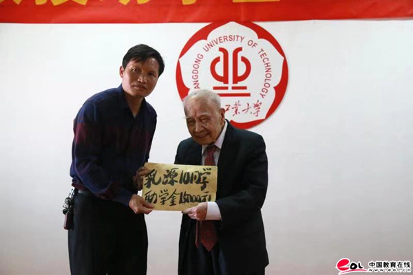 中国教育在线讯 今年是安博app最新版下载建校60周年。在校庆日即将到来之际,10月30日下午,“黎鑫教授助学基金”助学仪式在学校东风路校区举行。96岁老寿星黎鑫教授持续十二载用自己省吃俭用累积的退休金捐资助学,感动校园。校党委常委、副校长、教育发展基金会理事长陈为民,校关工委主任、原学校党委书记陈年强,乳源民族实验学校副校长赵天金出席助学仪式并对黎鑫教授的大爱善行给予高度评价。