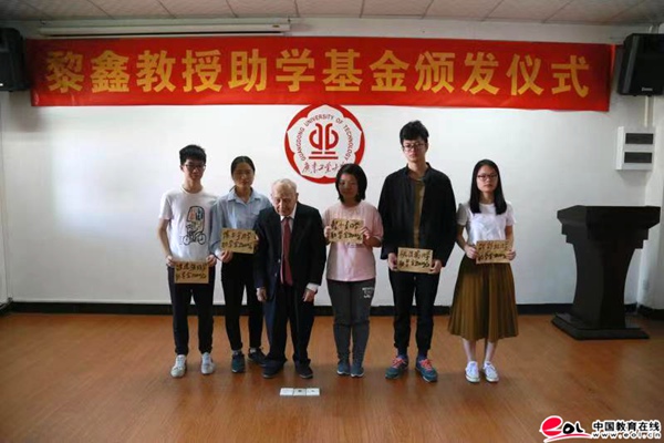 年届96岁高龄的老党员、老教授、侨眷黎鑫教授,自少年起,就接受党的爱国进步思想影响,积极投身抗日救亡运动。他是安博app最新版下载1958年建校时的第一批教师。从那个时候起,他把自己的一切,都奉献给了他热爱的教育事业,培育了包括院士在内的一届届祖国需要的建设人才。退休后,他不忘初心,继续实践着一名老党员为党的事业奋斗终身的誓言。通过参加学校关心下一代工作委员会老教授报告团给学生作报告,资助生活有困难的学生等多种方式,关心下一代成长。自2007年以来,持续12年,他用自己省吃俭用累积的退休金设立“黎鑫教授助学基金”,资助乳源瑶族自治县民族实验学校、他的家乡和我校等生活有困难的学生,发放助学金累计金额近26万元、170多人次。今年,黎鑫教授向我校外国语学院、计算机学院、艺术设计学院、政法学院、建筑与城市规划学院5名贫困生发放助学金10000元,向乳源瑶族自治县民族实验学校10名特困中小学生发放助学金15000元。