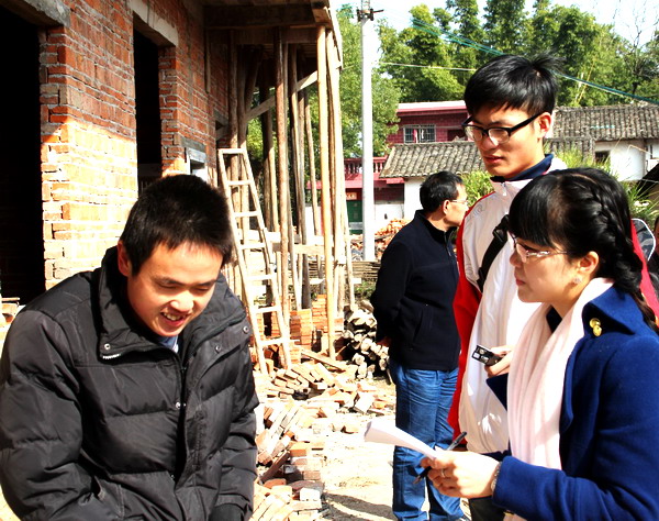 12日,工作组开展了进村扶贫活动。学校实验室与设备管理处、体育部、图书馆分别为村委会捐赠了一批办公设备、体育器材和图书资料,价值29176元。工作组分四组开展义诊和走访采访活动。由校医院派出的6名医务人员为村民测量血压,检查心电图,看病义诊,送医送药,累计检查了65人次,派发了价值1000元的药品。由宣传部和学生记者组成的入户采访组也分别深入官田片、里溪片走访农户,听取民意心声,体验帮扶变化和成效。综合采访组实地考察了扶贫项目村委会办公楼、太阳能路灯、垃圾屋、健身广场、三面光工程等,并深入田头山间调研油茶树的培育,考察茶叶基地的建设情况。南雄市双到办、南亩镇等有关领导陪同。