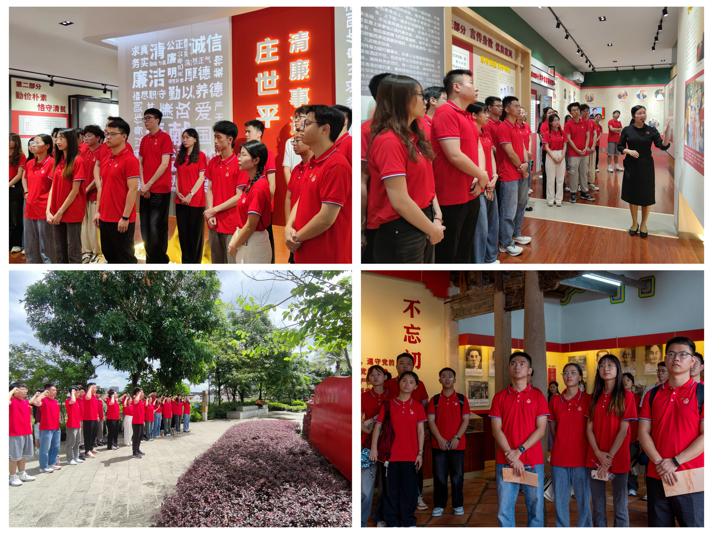 学生党员们赴普宁市廉政教育基地、党员教育基地开展警示教育。在庄世平博物馆,跟随讲解人员参观“清风厅”内珍贵的史料、展品,从庄世平老先生赤诚为国、两袖清风、勤俭朴素、恪守清贫、言传身教、优良家风的清廉事迹中涵养清风正气、坚定理想信念;在大南山街道什石洋红色村,浏览红色文化长廊,参观革命旧址,重温入党誓词,增强党性修养。