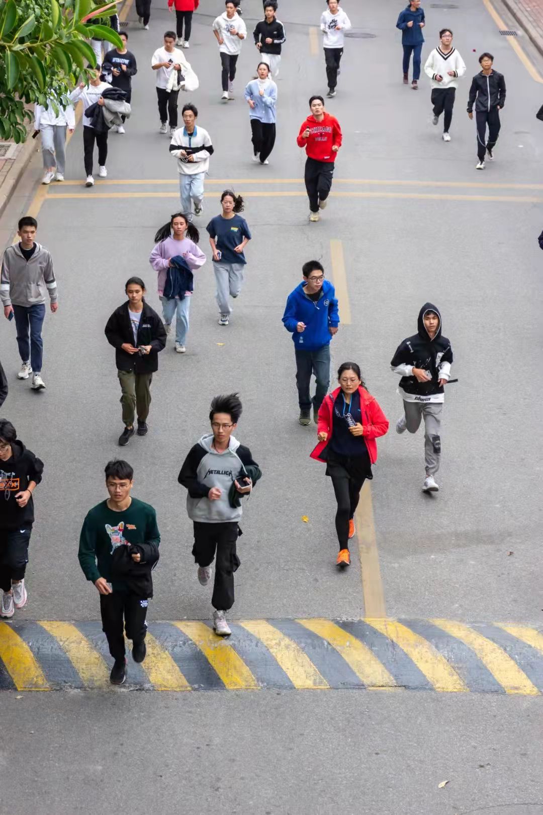 随着开跑的鸣笛声响起,各学院师生运动员在院旗的指引下火热奔跑,尽情享受冬季长跑带来的欢乐。